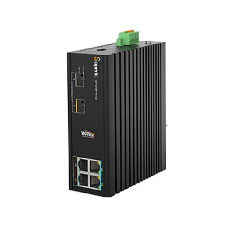 Wi-Tek SP3006FM-L2 V2 Industriell CCTV-switch 4 portar 10/100/1000 PoE+ 2x 2,5G SFP, för DIN-skena