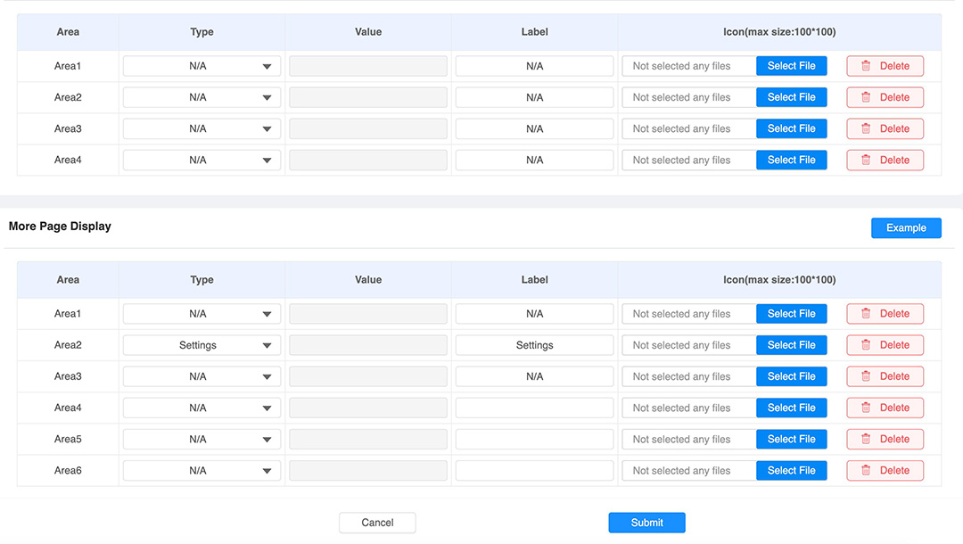 Under Device -> Display Settings kan du ta bort alla onödiga knappar som visas för slutanvändaren som kan orsaka förvirring. Sätt Type till N/A för att dölja valfria knappar.