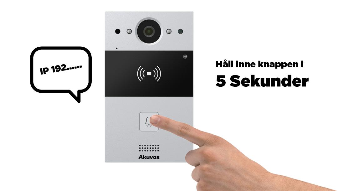 För att få fram IP-adressen till porttelefonen så kan du hålla inne ringknappen i fem sekunder, så säger porttelefonen vilken IP-adress som den har blivit tilldelad.