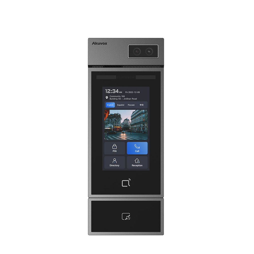Den 5" kapacitiva pekskärmen i kombination med en 2 MP vidvinkelkamera ger tydlig bild av besökare, även i svåra ljusförhållanden. Med stöd för flera olika öppningsmetoder – såsom ansiktsigenkänning, RFID/NFC, PIN-kod, QR-kod och Bluetooth – får du en modern och smidig accesslösning.