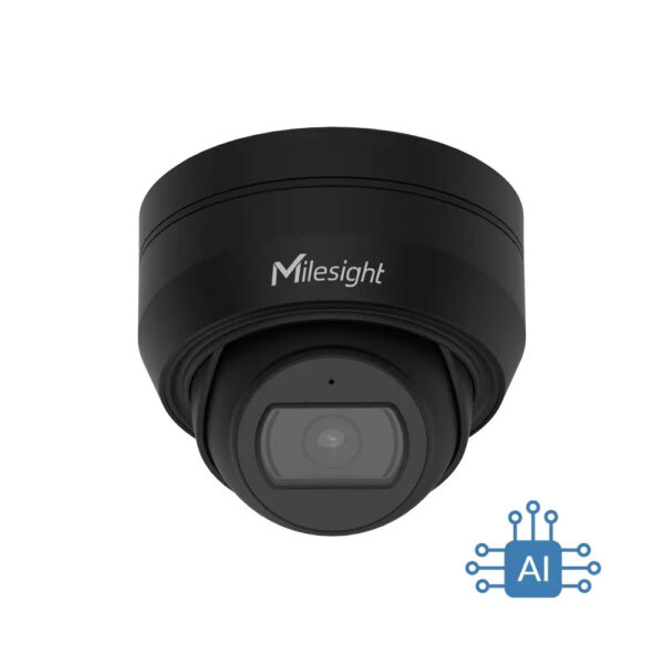 Liten 2.8mm turret kamera med upplösning på 5MP. Kameran är vandalsäker IK10 och IP67 utomhusklassad. Micro-SD slot för edgelagring på upp till 256GB. Kameran har åtta stycken olika AI-analyslägen och kan sortera på människor, fordon. Kameran har en RJ45 anslutning integrerad i backboxen