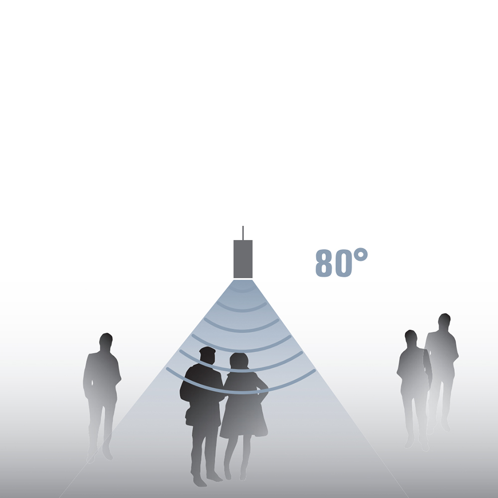 Eftersom högtalaren är så kompakt kan du antingen hänga den direkt från taket eller montera den på väggen med hjälp av vårt L-fäste WH 110. För att uppnå det allra bästa resultatet bör avståndet mellan högtalaren och lyssnaren vara så kort som möjligt. Dessutom är systemet utrustat med en praktisk Auto ON/OFF-funktion som sparar energi när ingen ljudkälla är aktiv.